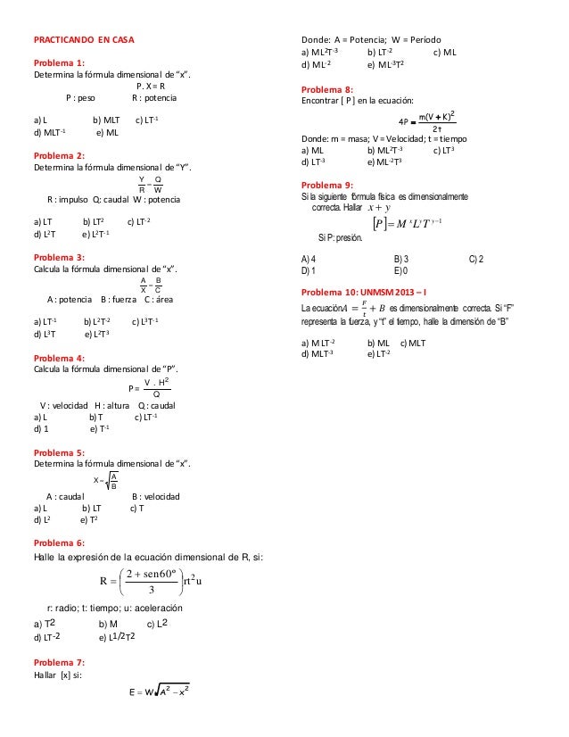Analisis Dimensional Ejercicios Y Problemas Resueltos Pdf