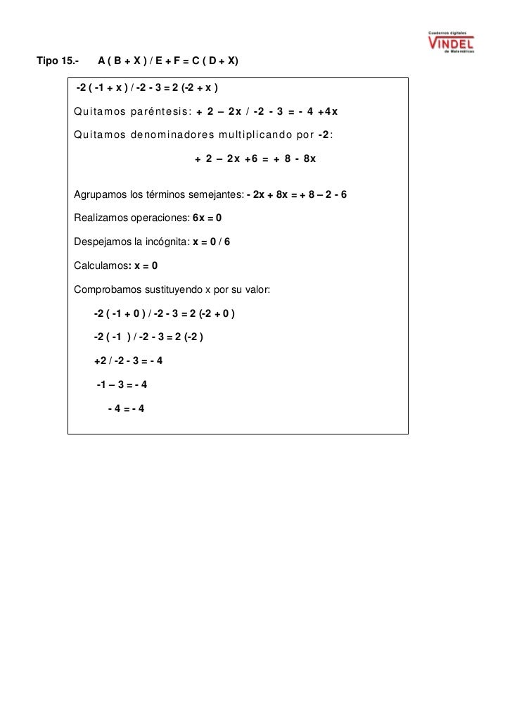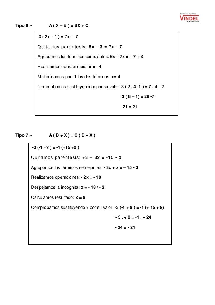 Resolucion De Ecuaciones Lineales En General Para Resolver Una Ecuacion Lineal O De Primer Grado Debemos Seguir Los Siguientes Pasos Pdf Descargar Libre