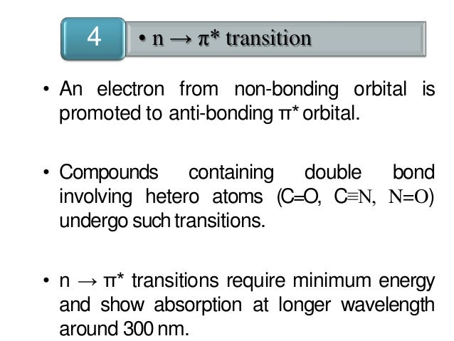 Types Of Transitions In U V Spectroscopy Molecule Undergo Electronic Transition Involving S P And N Electrons Four Types Of Electronic Transition Ppt Download